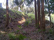 | 城跡の少し南には円通寺があります。城跡の頂上部は現在、共同墓地となっていますが、櫓台跡といった感じです。 |