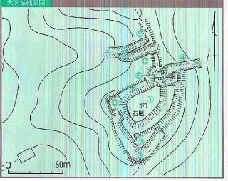 城のすぐ北側から入ることになります。西側に立派な竪堀、その南には大きな2本の堀切で尾根を断ち切り、主郭虎口には石積みもあります。この南にも通路が続き横堀も見られます。コンパクトな城域にギュッと防御施設が詰まっていておススメです。