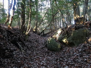 があります。3号城は一番東にあり、3城の中で一番小さいです。三方に土塁と東と西に堀切があります。更に東に古墳が2つ(宮山1号墳・2号墳)あります。